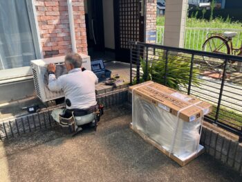 アイリスオーヤマのエアコンを支給し取付工事