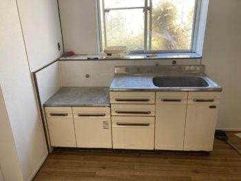 キッチンも床のクッションフロアや壁のキッチンパネルも貼ったのでキッチンを移動してセッティング完了です。