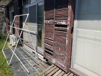 雨漏り後もあり外部の木部の塗膜劣化や腐食も見られます。