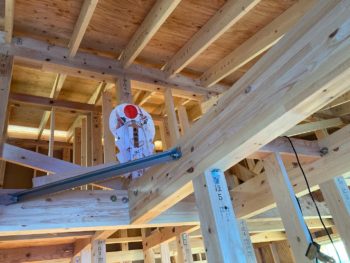 ハウスジーメンの瑕疵保険検査員をやってますが、上棟後の構造材や金物、防水紙や防水テープなどが適切に施工されているか検査に来ました。