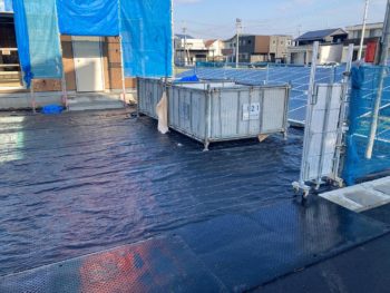 こちらの業者さんは敷地内の地面までシート養生されて土汚れがない様にしっかり保護されていました。