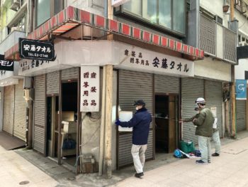 中問屋町の商店街の各建物にも調査が入り建物の査定や建物内部にある設備や備品、商品なども全て記録を取っていきます。