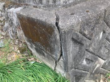 新設された擁壁にヒビが入り擁壁自体が沈下及び傾斜していると思われます。