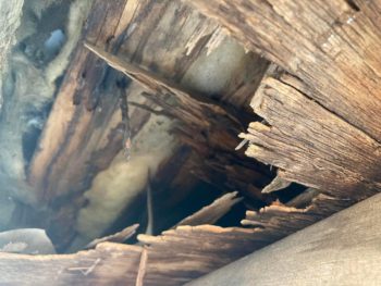 他にもカラー鉄板瓦棒葺の小口に穴が空いており、そこから雨水が侵入して軒天井や広小舞や鼻隠しなどが腐食していました。
