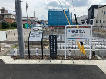 この場所は昔は美濃北方駅だった場所で記念碑が残っており分譲地の一角に駅名看板や石碑ほか解説も掲示されていましたので記念撮影しました。