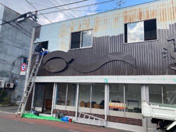 羽島市の空き家をコワーキングスペースにするために備品や資金も提供いただいた友人が多能工職人さんも一緒に連れてきてくれて外壁の塗装工事もやってくれました。