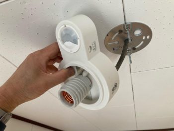 その後、照明器具のカバーを取り付けて専用金具で押さえてからLED電球を取り付けて完成です。