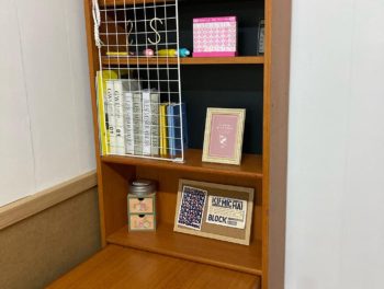 机の本棚も本や小物を飾りつけました。