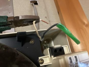 カバーを外し換気扇本体を外しましたが、電気の線が直結ですがスイッチがありません。そこでブレーカーを落として電気が来ない様にして電線を外してテープ巻きしました。