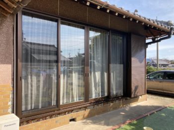 各務原市の古民家にお住まいになっているお客様から玄関引戸の取替えと共に居間の掃き出しサッシの取替も依頼されておりましたので工事を行いました。