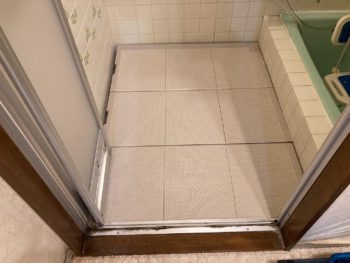 タイル床が傾斜していますのでネジ式足の長さを1本づつ高さ調整するのが面倒でしたが、1枚目で組立て要領が分かると2〜3枚目はスムーズに施工できました。