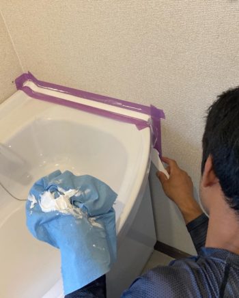 また洗面台を設置して壁との隙間はシーリング材を太く滑らかに仕上げる技も必要ですね。