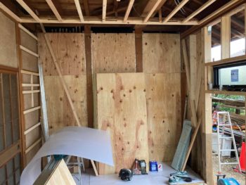 構造用合板を取り付け後に天井工事