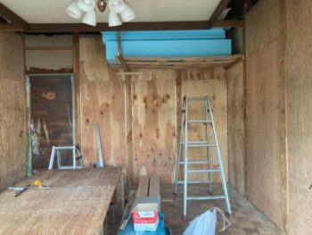床と壁にはスタイロフォーム、天井はグラスウールで断熱化も図ります。