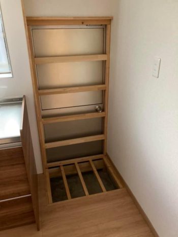 岐阜県各務原市の空き家を購入されたお客様からの依頼で勝手口ドアを封鎖し壁にし、勝手口に床を貼る工事を行なっています。