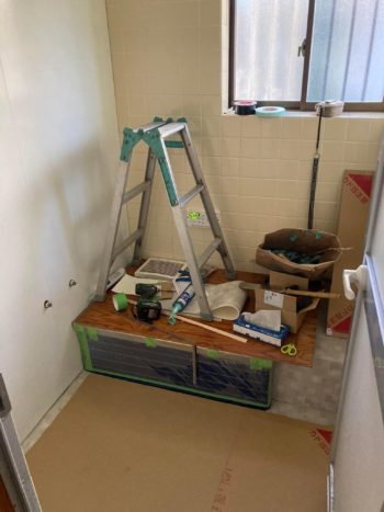 また窓や入口は樹脂製の枠材を接着して納める事になりますが、ただ貼るだけでなく付属部材やシャワー水栓や照明器具、換気扇の脱着などもあり他の職人さんとの連携プレーも大切です。