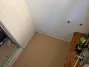 フクビの【あんから】という床シートや【アルパレージ】という壁パネルを既設の床と壁のタオルに貼る事を提案して、大工さんに貼ってもらいました。