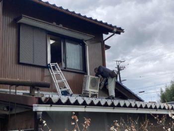 屋根を撤去するため室外機を外します。