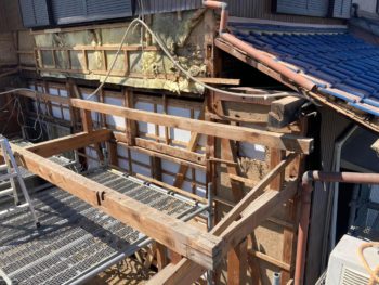 屋根を撤去して新たに桁を入れて屋根を高くします。