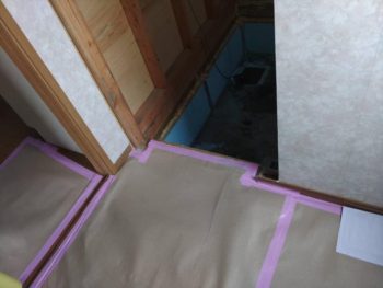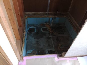 愛知県扶桑町で当社が25年前に新築した高断熱高気密住宅FPの家のユニットバス取り替え工事のため、既設のユニットバス解体工事が終わりました。