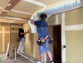室内では大工さんが追加工事の廊下のバリアフリー化工事でフロアーの増し貼りを行っており和室の畳との段差を無くしています。