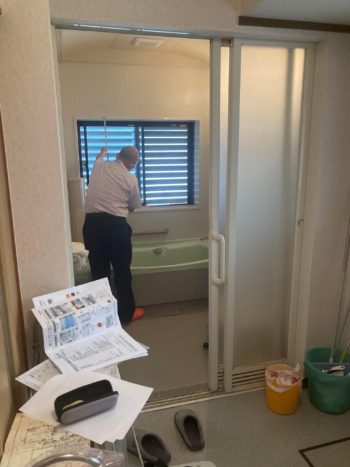 岐阜県各務原市のユニットバス交換工事の見積の了解が得られて販売店の担当者が採寸に来ました。