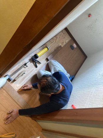 トイレの床嵩上げ工事をする大工さん
