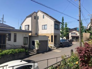 小屋裏利用の屋根裏部屋があるため高さが高く屋根勾配も急傾斜地なので屋根足場も組み立てて屋根塗装も行う予定です。