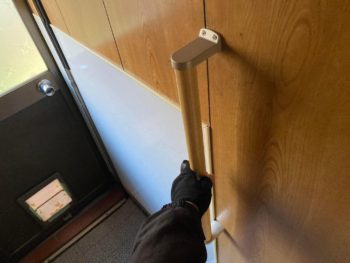すでに玄関のアプローチ部分にはプロ職人に依頼してアルミ手すりを設置してもらったので、室内手すりはDIYで取り付けしました。