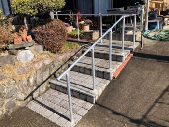 アプローチ階段のアルミ手すりはプロ職人が取付