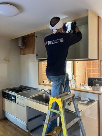 岐阜県各務原市の性能向上リフォーム工事でキッチンの解体工事を開始しました。