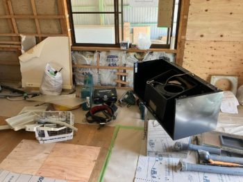 今回は壁の断熱が土壁が入っているために撤去してまで行いませんでしたが、以前には他の現場では、内側にネオマフォーム断熱材を貼って高断熱化を行いました。