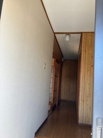耐震補強した玄関部分の壁天井クロス貼り完了