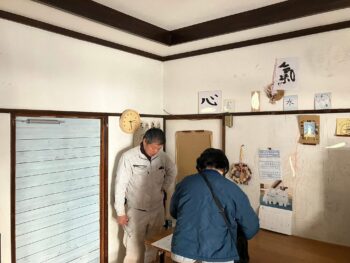 設計者と現場監督の耐震補強工事の打合せ