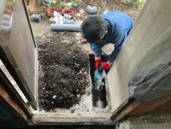その配管は勝手口土間下を通り外部の既設排水枡に接続することとなりました。
