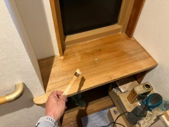 残りの工事として窓枠や窓カウンターを塗装して、カウンターに手洗い器を設置する工事が残っています。