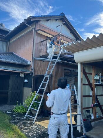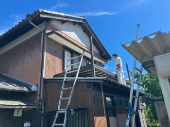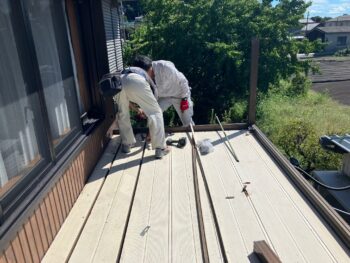 工事はまず、屋根に設置されたベランダやアルミテラスの撤去からスタート。現在は大工と監督の2名体制で慎重に解体を進めています。