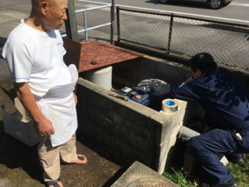 当社の事務所は井戸水を利用しており、隣の春駒寿司さんと共同で井戸とポンプを管理しています。