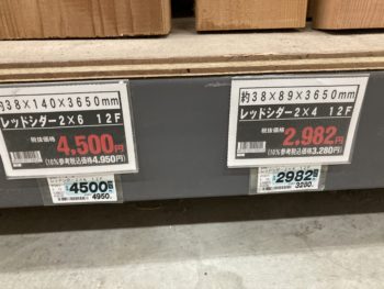 先日ご相談があって現地を確認した広大なウッドデッキの取替え材料をホームセンターで見てきました。
