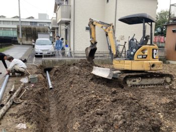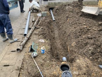 【隣地の下水管破壊で復旧工事】