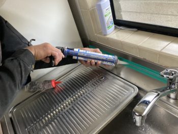 天板を裏から補強して水栓を取り替え隙間にシーリングを打ちましたが、30年経過するのでキッチンの取り替えも視野に入れていただく必要がありそうですね。