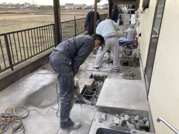 昨日はコンクリートをカットしましたが本日はコンクリートを削ります。