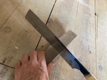 補強する垂木材をカット