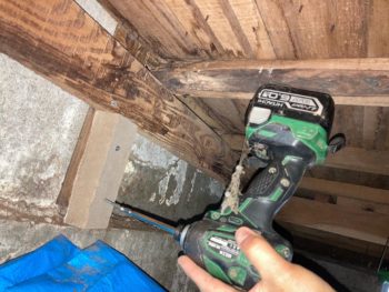 畳下の床板を外して床下に侵入して補強工事