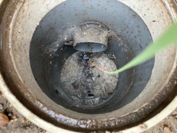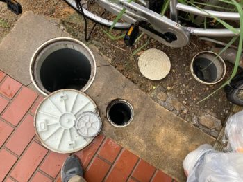 下水に接続されているのですが、古いコンクリート枡が使われているのは疑問なのですが原因を探ります。