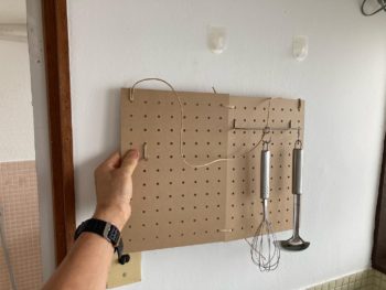 岐阜市の全空だったアパートEast post黒野を女子大生にステージングしてもらいましたが、後日に見に行ったら両面テープで接着したキッチンのオタマ掛けパネルが落下していました。