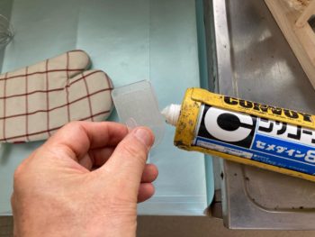 フックをシーリング材で接着します。
