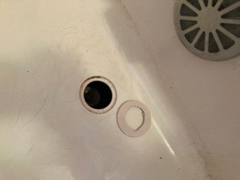 浴槽の排水口を確認すると排水口部品が外れて下部に取り付けてあったジャバラの排水パイプは外れているのが確認されました。