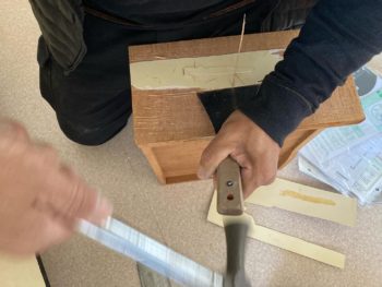 キッチンの劣化したパネルをめくり貼り替え