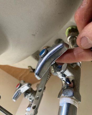 現地を確認に行くと洗面化粧台の止水栓から水漏れがするようだ。